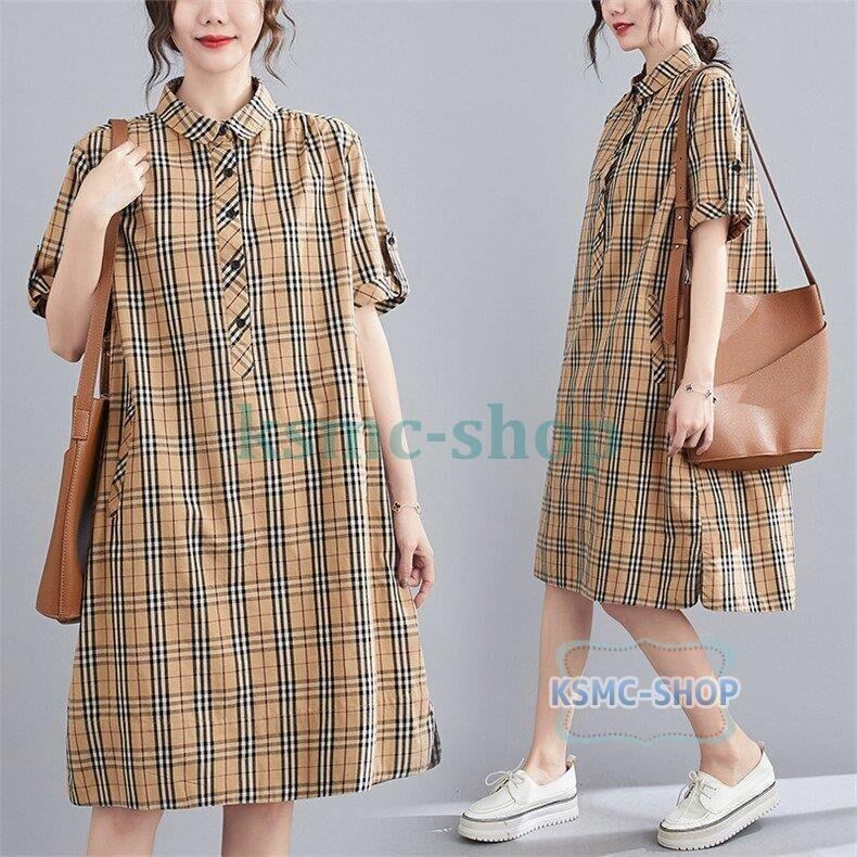 シャツワンピース レディース ロングシャツ チェック柄 長袖 五分袖 韓国風 韓国 ファッション コーデ おすすめ カジュアル きれいめ 大きいサイズ 人気 ゆったり 20代 30代 40代 50代