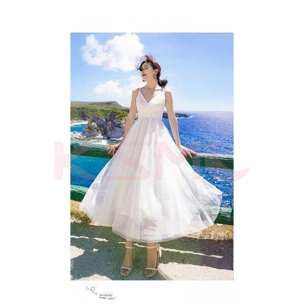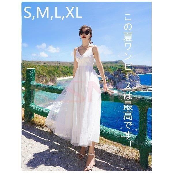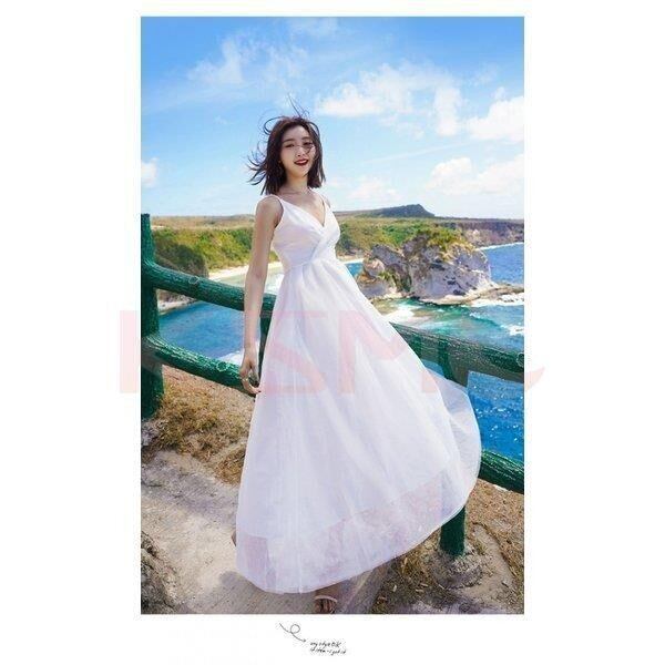 ワンピース レディース 白 ロングワンピース ノースリーブ リゾート 結婚式 韓国風 7235