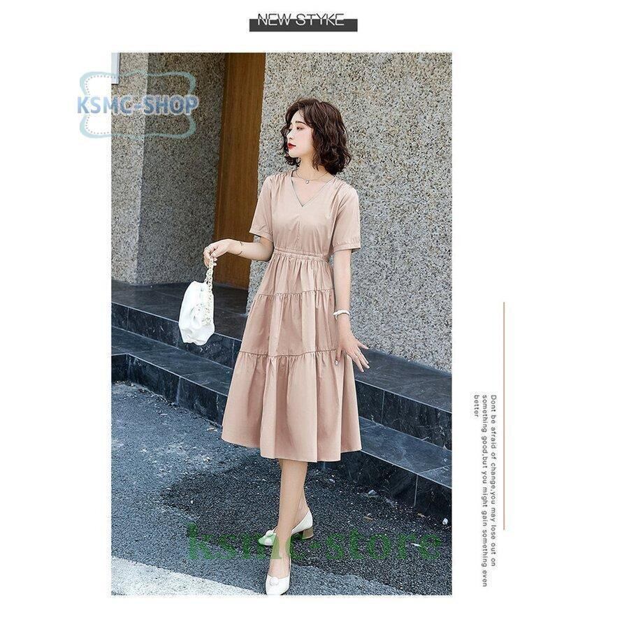ワンピース レディース 6色 半袖 Vネック Aライン マキシワンピース 韓国風 7252