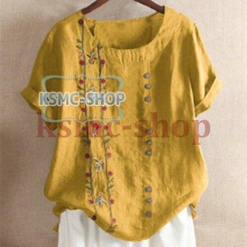ブラウス シャツ レディース 6色 半袖 おしゃれ 刺繍 ゆったり 韓国風 7254