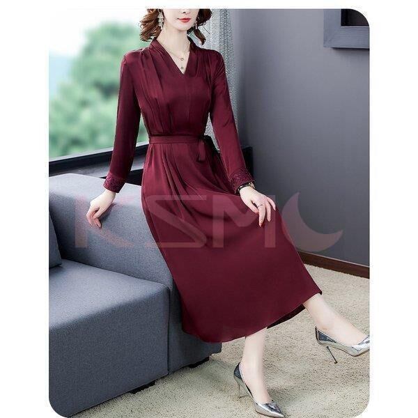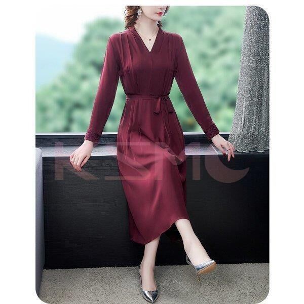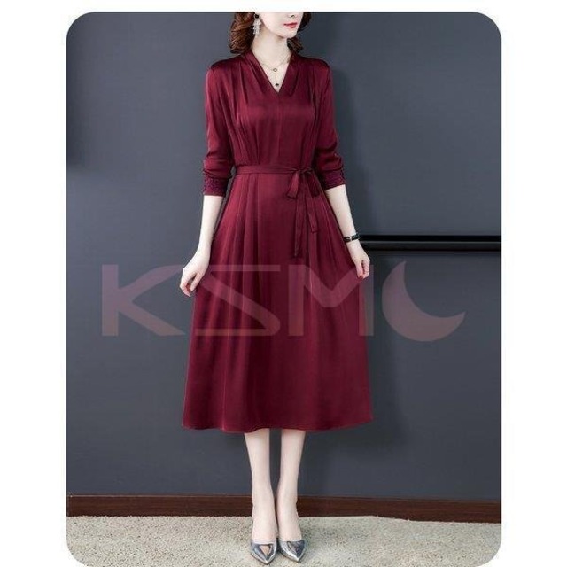 ワンピース レディース 2色 長袖 Vネック 結婚式 二次会ドレス 韓国風 韓国 ファッション コーデ おすすめ カジュアル きれいめ 大きいサイズ 人気 ゆったり 20代 30代 40代 50代