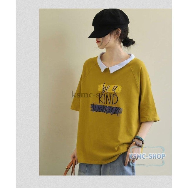 ★特徴:カジュアルコーデにおすすめのtシャツ。襟付きでかわいい。韓国ファッション好きに