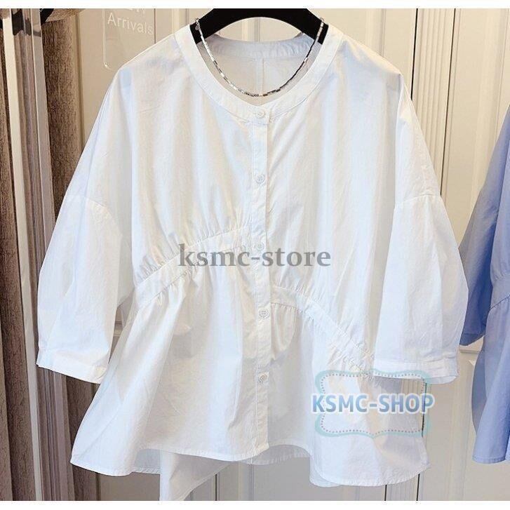 ブラウス シャツ レディース 五分袖 3色 ゆったり ギャザーブラウス 韓国風 韓国 ファッション コーデ おすすめ カジュアル きれいめ 大きいサイズ 人気 ゆったり 20代 30代 40代 50代