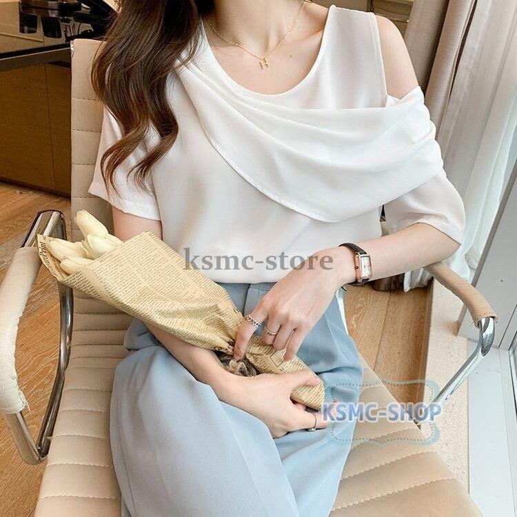 ブラウス シャツ レディース 半袖 2色 肩出し トップス 韓国風 韓国 ファッション コーデ おすすめ カジュアル きれいめ 大きいサイズ 人気 ゆったり 20代 30代 40代 50代
