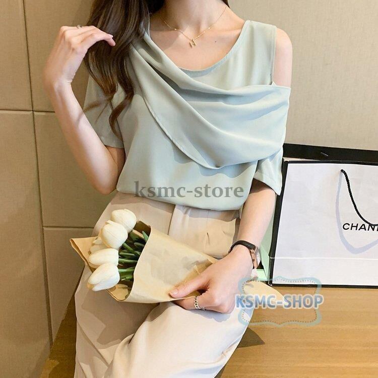 ブラウス シャツ レディース 半袖 2色 肩出し トップス 韓国風 7174