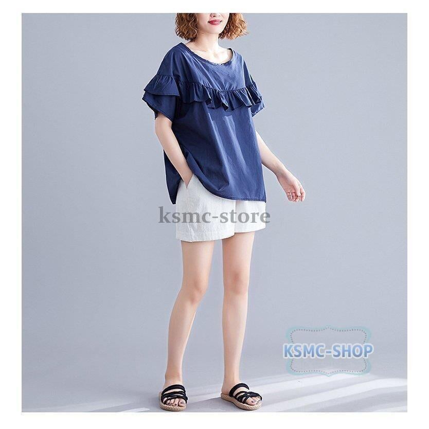 ブラウス シャツ レディース 半袖 2色 ゆったり フリル 韓国風 韓国 ファッション コーデ おすすめ カジュアル きれいめ 大きいサイズ 人気 ゆったり 20代 30代 40代 50代