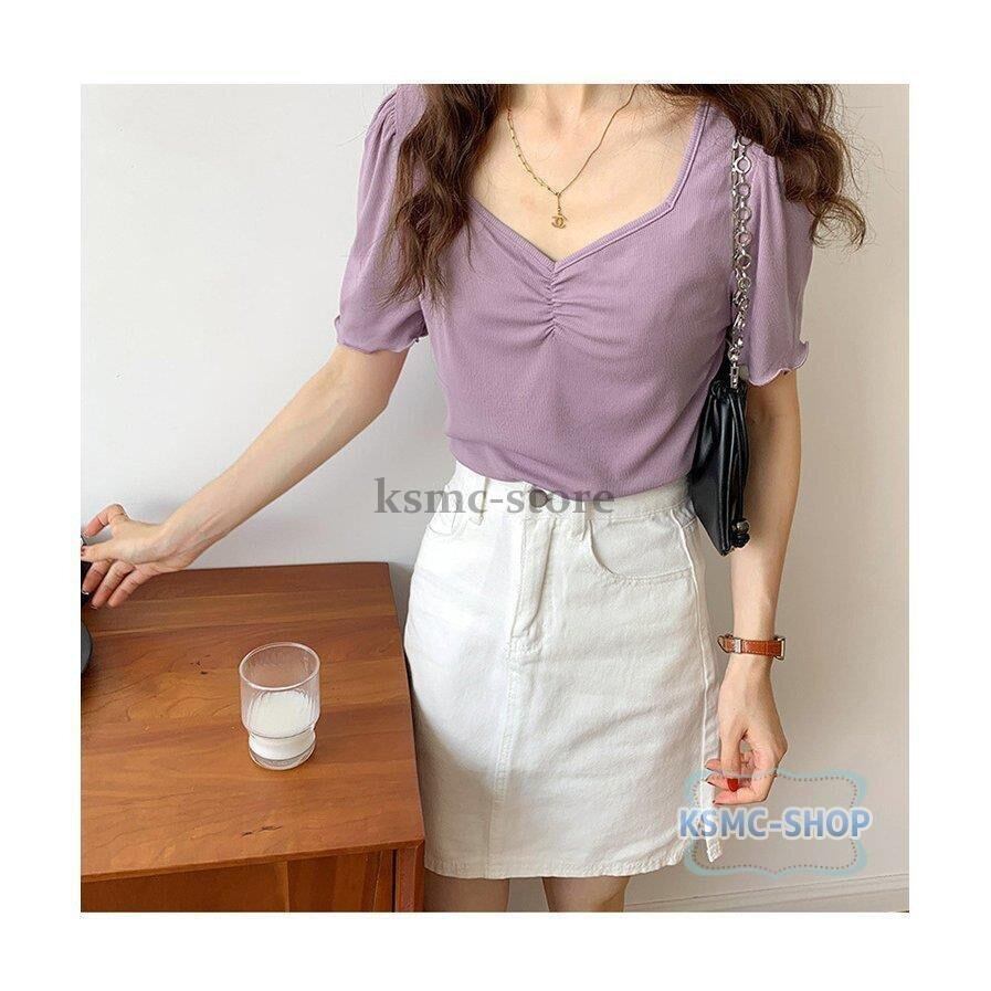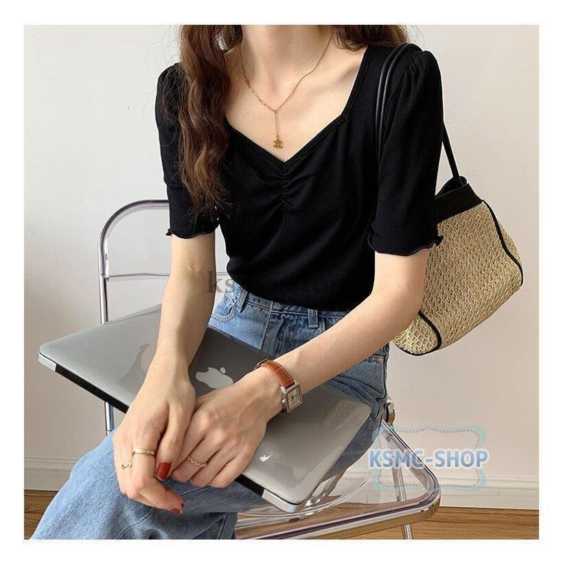 ブラウス シャツ レディース 半袖 4色 スクエアネック きれいめ 韓国風 韓国 ファッション コーデ おすすめ カジュアル きれいめ 大きいサイズ 人気 ゆったり 20代 30代 40代 50代