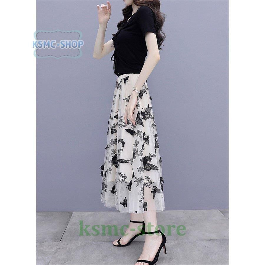 セットアップ レディース 半袖 きれいめ Vネック 大人 上下セット 韓国風 7190
