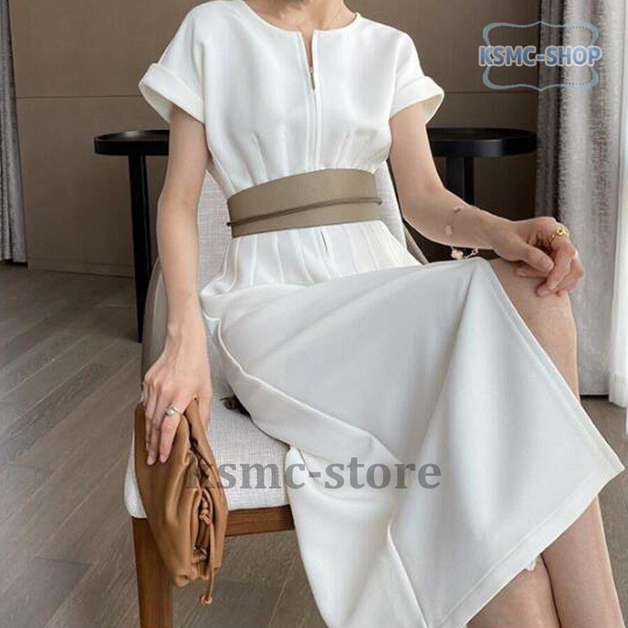 ワンピース ロング丈 レディース 半袖 白 きれいめ 結婚式 パーティー 韓国風 韓国 ファッション コーデ おすすめ カジュアル きれいめ 大きいサイズ 人気 ゆったり 20代 30代 40代 50代