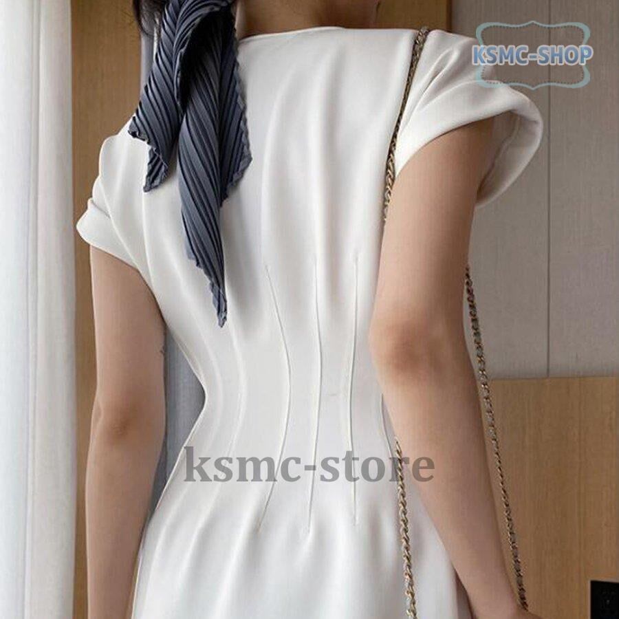 ワンピース ロング丈 レディース 半袖 白 きれいめ 結婚式 パーティー 韓国風 7307