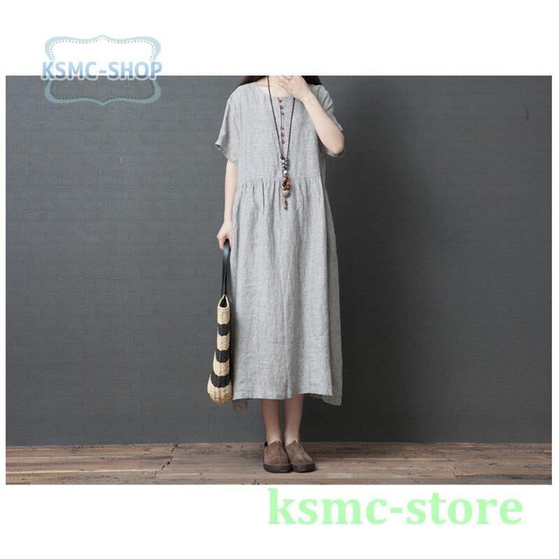 ワンピース ロングワンピース レディース 2色 半袖 綿麻 ゆったり 韓国風 韓国 ファッション コーデ おすすめ カジュアル きれいめ 大きいサイズ 人気 ゆったり 20代 30代 40代 50代
