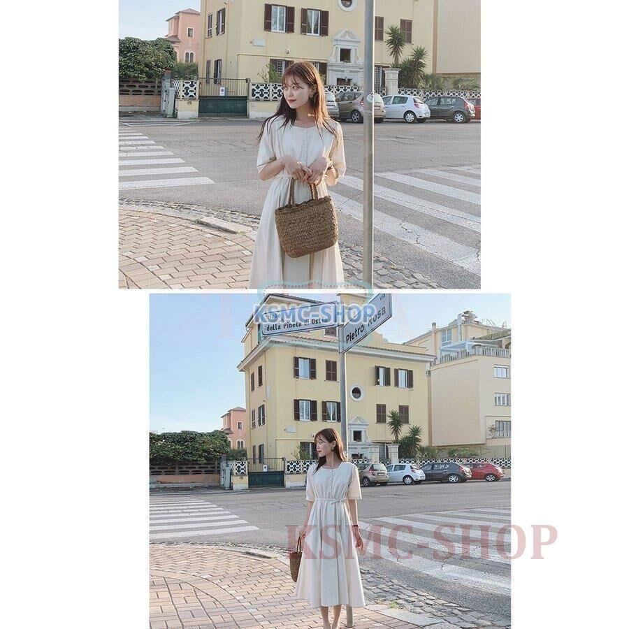 ワンピース シャツワンピース レディース 半袖 3色 マキシ丈 上品 韓国風 7335