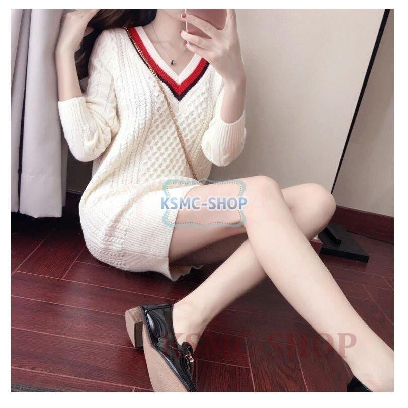 ワンピース ニットワンピース レディース 長袖 3色 Vネック ミニ 韓国風 韓国 ファッション コーデ おすすめ カジュアル きれいめ 大きいサイズ 人気 ゆったり 20代 30代 40代 50代
