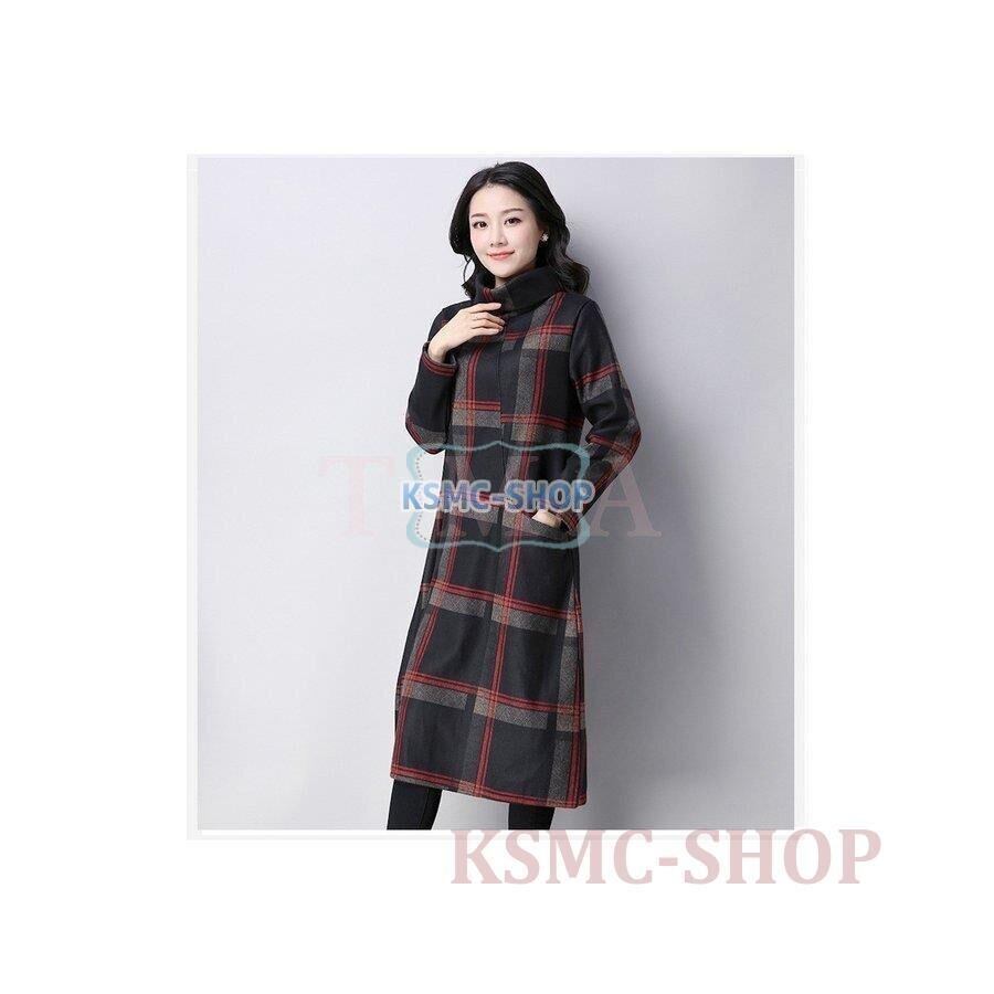 ワンピース ロング丈 レディース 長袖 3色 タートルネック チェック柄 Aライン 韓国風 韓国 ファッション コーデ おすすめ カジュアル きれいめ 大きいサイズ 人気 ゆったり 20代 30代 40代 50代