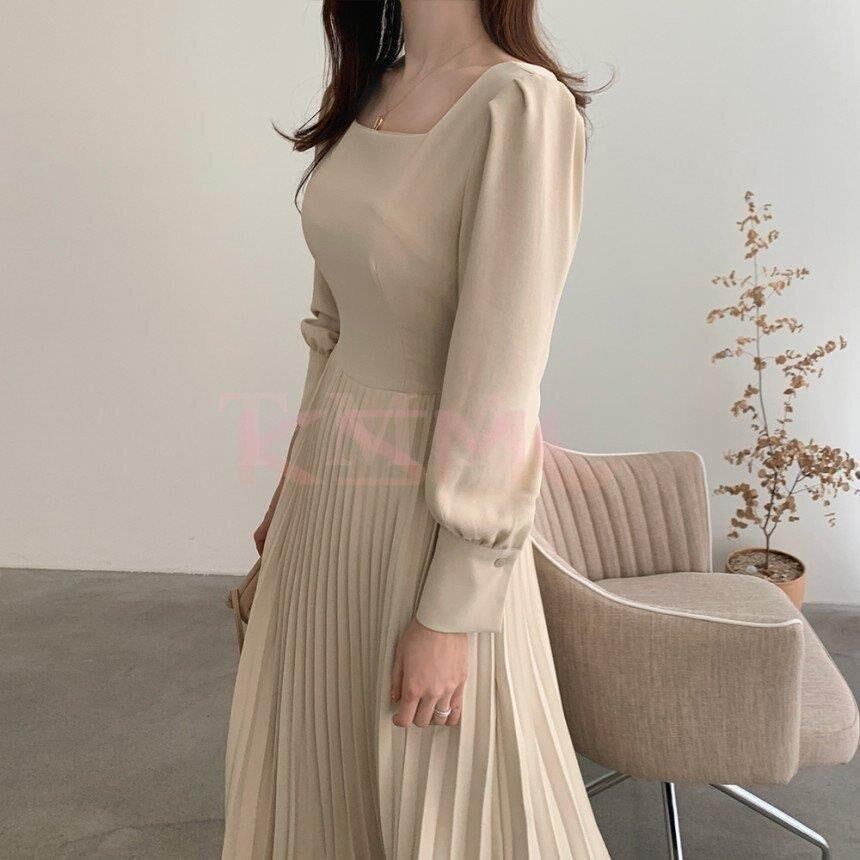 ワンピース 無地 レディース 長袖 2色 ロングワンピース きれいめ フレア 韓国風 韓国 ファッション コーデ おすすめ カジュアル きれいめ 大きいサイズ 人気 ゆったり 20代 30代 40代 50代