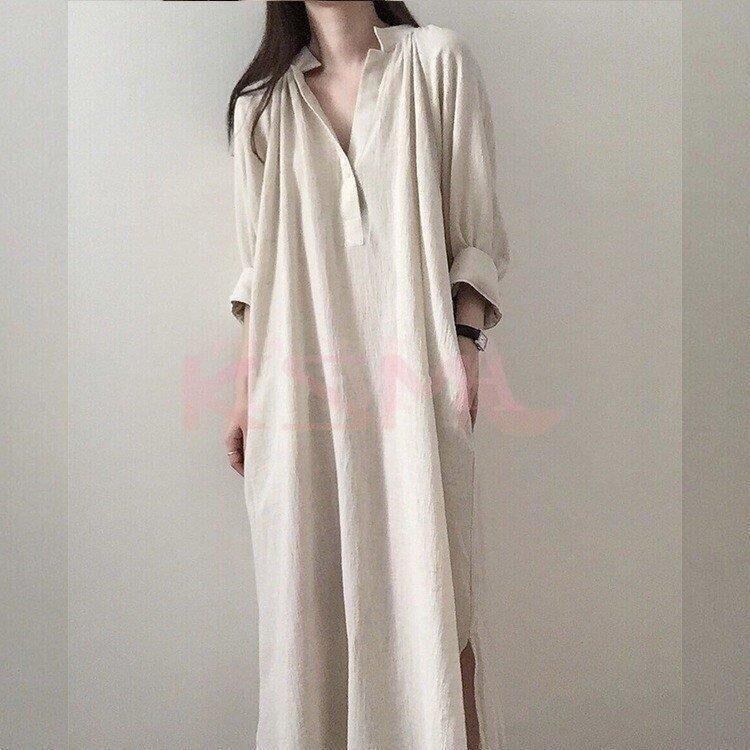 ワンピース マキシワンピース レディース 七分袖 ロング Vネック 春夏 韓国風 韓国 ファッション コーデ おすすめ カジュアル きれいめ 大きいサイズ 人気 ゆったり 20代 30代 40代 50代