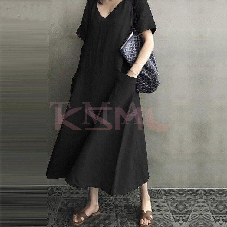 ワンピース ロングワンピース レディース 半袖 3色 Vネック ロング 韓国風 韓国 ファッション コーデ おすすめ カジュアル きれいめ 大きいサイズ 人気 ゆったり 20代 30代 40代 50代
