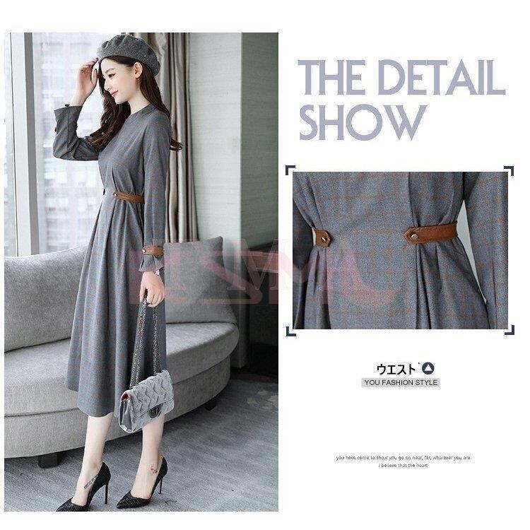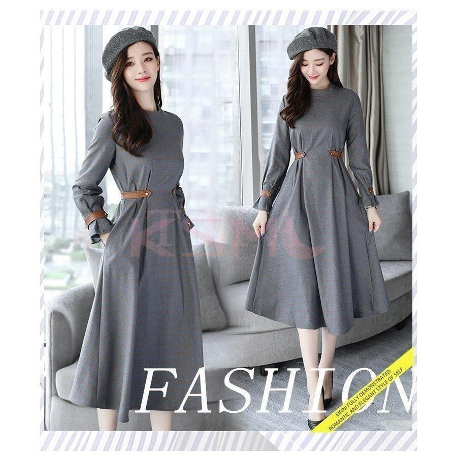 ワンピース ロングワンピース レディース グレー 無地 Aライン 韓国風 7392