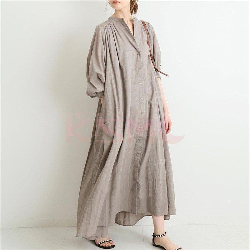 ワンピース シャツワンピース レディース ロング丈 長袖 ゆったり 韓国風 7396