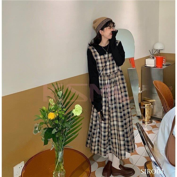 ワンピース チェック柄 2点セット レディース トップス+ワンピース ゆったり 韓国風 韓国 ファッション コーデ おすすめ カジュアル きれいめ 大きいサイズ 人気 ゆったり 20代 30代 40代 50代