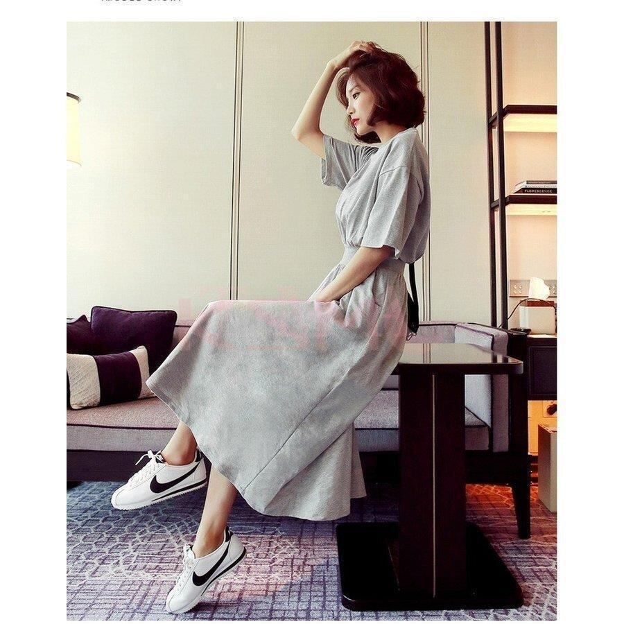 ワンピース レディース 2色 五分袖 マキシ丈 ハイウエスト フレア 韓国風 7400