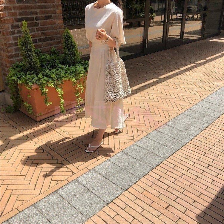 ワンピース レディース 白 五分袖 マキシ丈 ロング丈 春夏 韓国風 韓国 ファッション コーデ おすすめ カジュアル きれいめ 大きいサイズ 人気 ゆったり 20代 30代 40代 50代