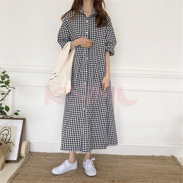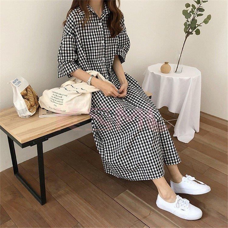 ワンピース シャツワンピース レディース チェック柄 半袖 おしゃれ マキシ丈 韓国風 韓国 ファッション コーデ おすすめ カジュアル きれいめ 大きいサイズ 人気 ゆったり 20代 30代 40代 50代