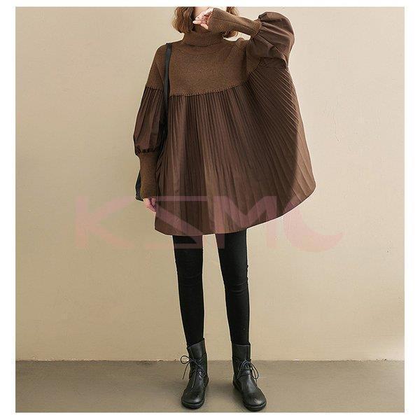 チュニック ブラウス レディース 長袖 2色 ハイネック ゆったり きれいめ 秋冬 韓国風 7413