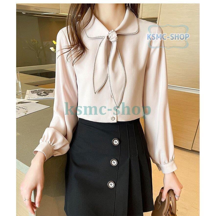 ブラウス シャツ レディース 長袖 シフォン 無地 きれいめ おしゃれ 韓国風 7431