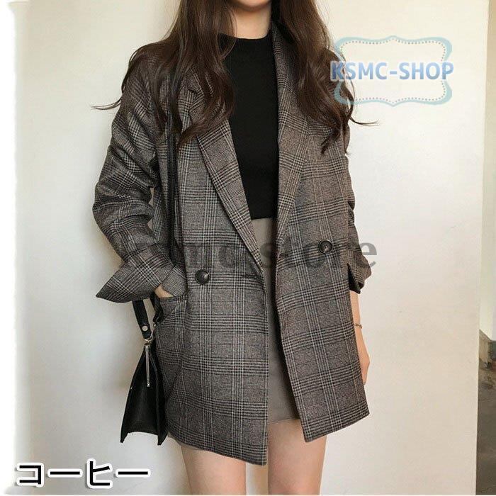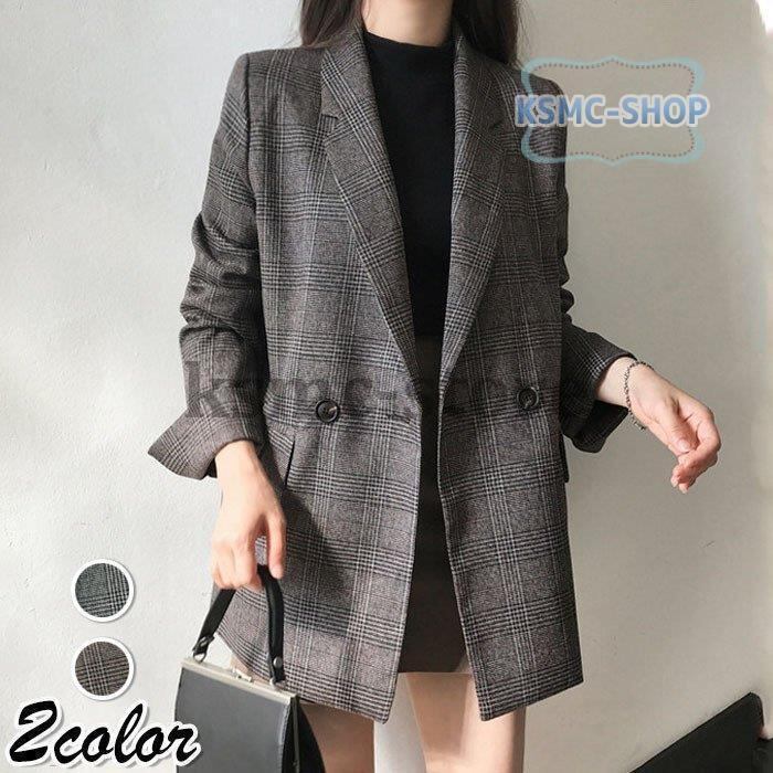 テーラードジャケット ブレザー レディース 長袖 チェック柄 スーツ 韓国 ファッション コーデ おすすめ カジュアル きれいめ 大きいサイズ 人気 ゆったり 20代 30代 40代 50代