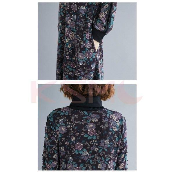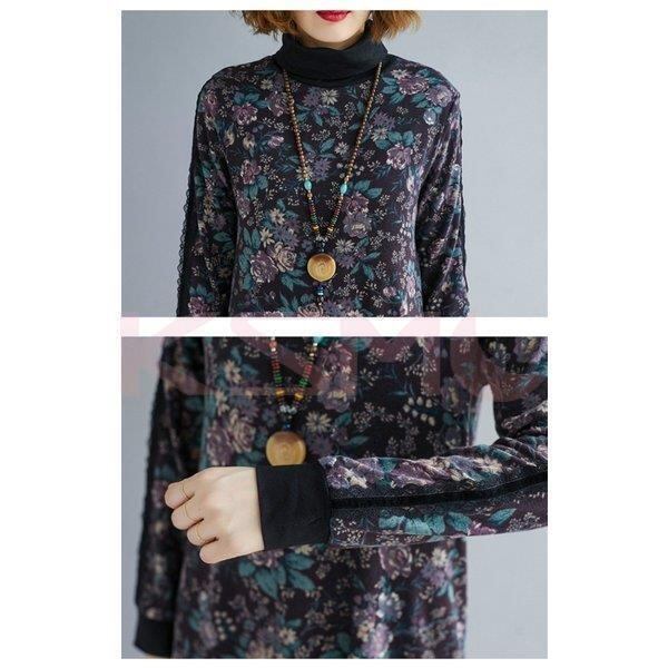 ワンピース 花柄 レディース 長袖 2色 ハイネック チュニック ゆったり 7540
