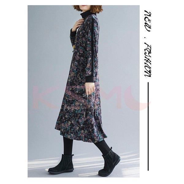 ワンピース 花柄 レディース 長袖 2色 ハイネック チュニック ゆったり 韓国 ファッション コーデ おすすめ カジュアル きれいめ 大きいサイズ 人気 ゆったり 20代 30代 40代 50代