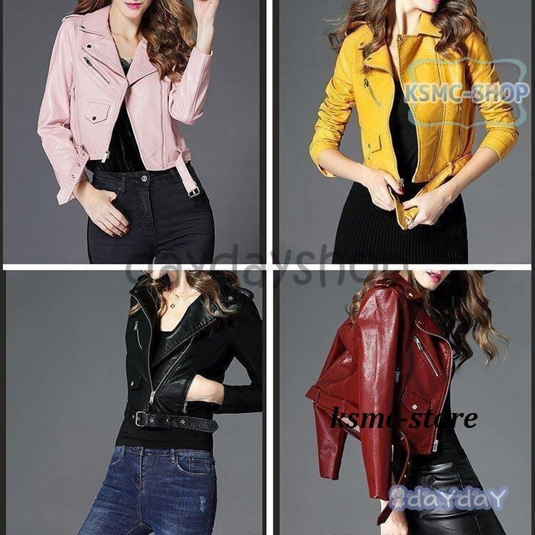 ライダースジャケット レザージャケット PUレザー レディース 長袖 3色 7552