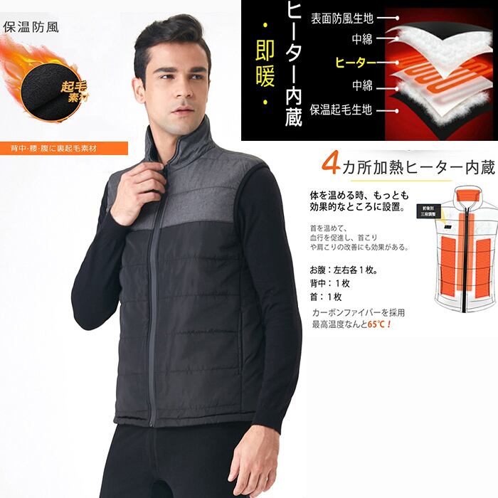 ヒートベスト 電熱ベスト メンズ レディース アウトドア スキー 釣り 加熱式 冬物 7580