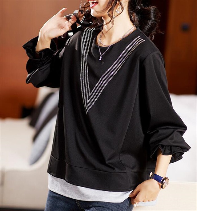 ブラウス カットソー レディース 黒 Vネック ゆったり きれいめ 韓国 ファッション コーデ おすすめ カジュアル きれいめ 大きいサイズ 人気 ゆったり 20代 30代 40代 50代