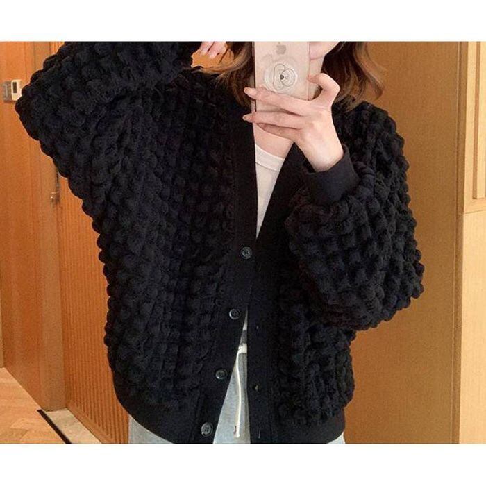 カーディガン ポップコーン レディース 2色 長袖 カジュアル 秋冬 通勤 韓国 ファッション コーデ おすすめ カジュアル きれいめ 大きいサイズ 人気 ゆったり 20代 30代 40代 50代