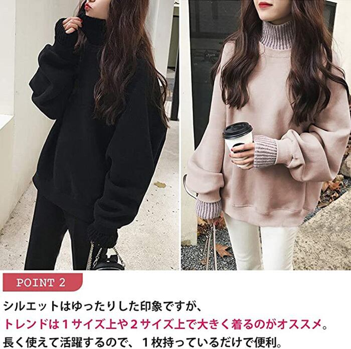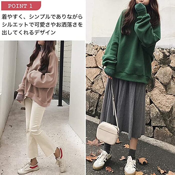 スウェット プルオーバー タートルネック レディース 3色 長袖 ゆったり 韓国風 ファッション コーデ おすすめ カジュアル きれいめ 大きいサイズ 人気 ゆったり 20代 30代 40代 50代
