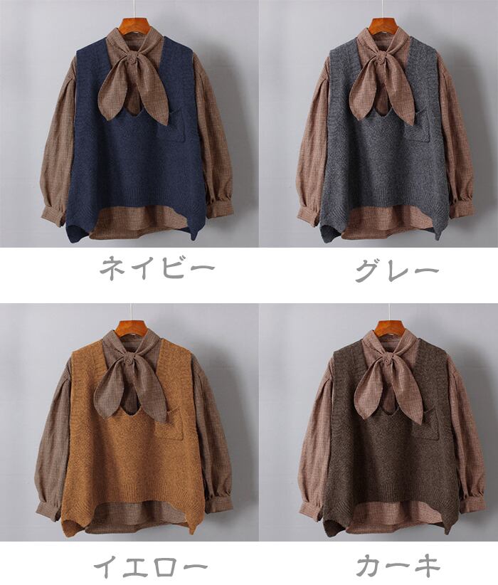 ベスト+ブラウス 2点セット レディース 4色 重ね着 トップス 韓国風 ファッション コーデ おすすめ カジュアル きれいめ 大きいサイズ 人気 ゆったり 20代 30代 40代 50代