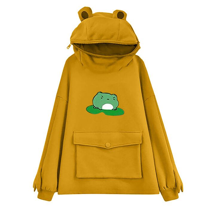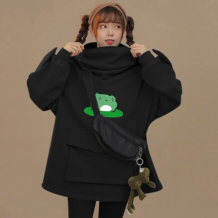 パーカー プルオーバー レディース 5色 ゆったり 裏起毛 カエル かわいい おしゃれ 韓国 ファッション コーデ おすすめ カジュアル きれいめ 大きいサイズ 人気 ゆったり 20代 30代 40代 50代
