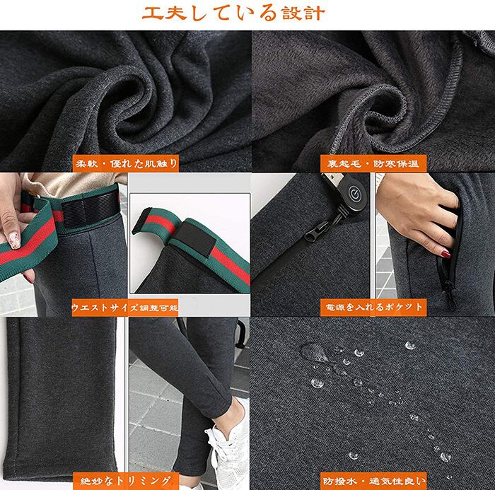 ★特徴:【高品質素材】: ウォームパンツは高品質ポリエステル繊維を採用され、生地は柔らかく、耐摩耗性があり、優れたストレッチでより動きやすく着心地良くて、高温耐性、抗引っ張り、壊れやすい心配なし。5V2A標準電源を使用してください