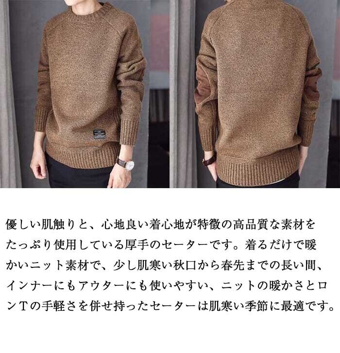 ★特徴:優しい肌触りと、心地良い着心地が特徴の高品質な素材をたっぷり使用している厚手のセーターです。着るだけで暖かいニット素材で、少し肌寒い秋口から春先までの長い間、インナーにもアウターにも使いやすい、ニットの暖かさとロンTの手軽さを併せ持ったセーターは肌寒い季節に最適です。