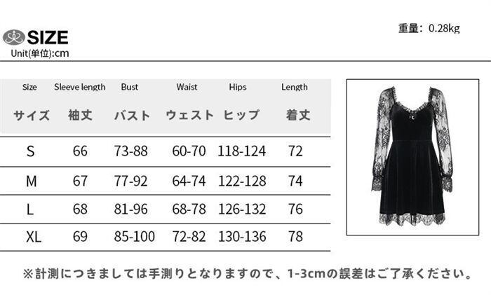 XL:袖丈69 バスト85-100 ウエスト72-82 ヒップ130-136 着丈78