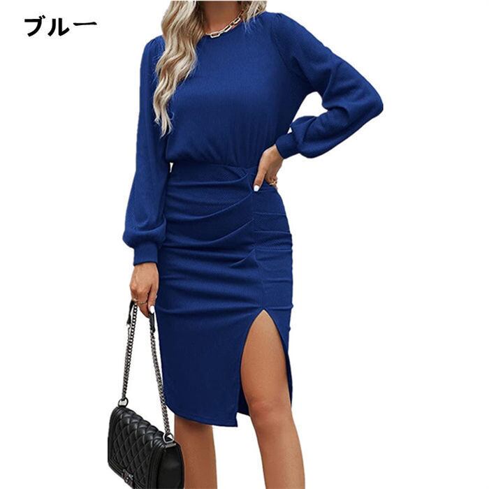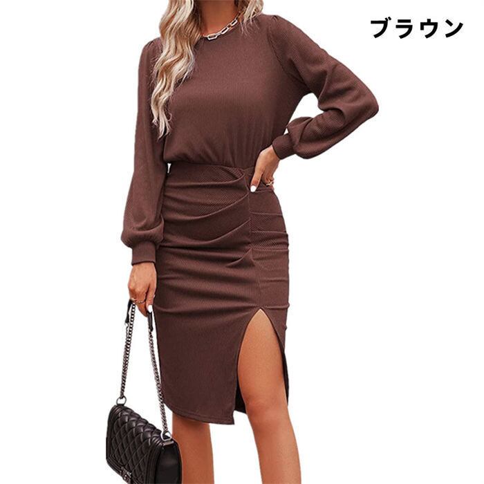 ワンピース ニットワンピース レディース 6色 長袖 膝丈 秋冬 おしゃれ 22zm175