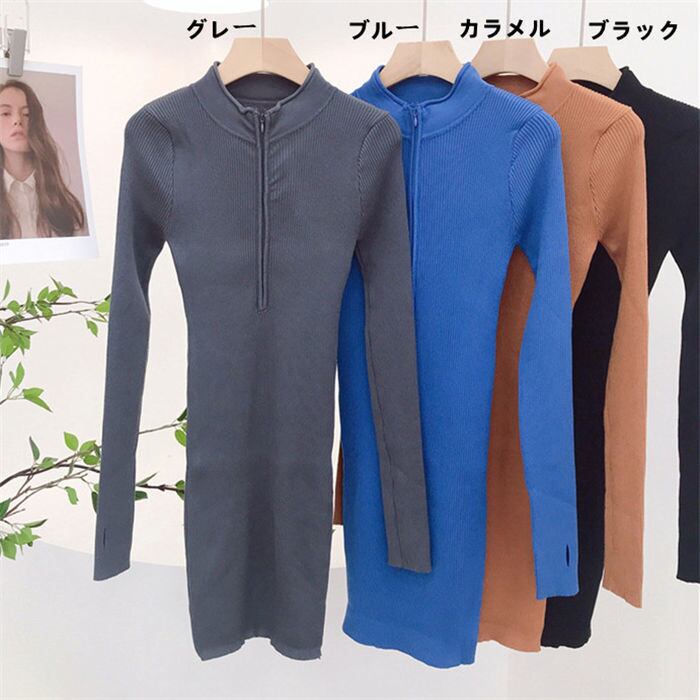 ワンピース ニットワンピース レディース 4色 長袖 膝丈 秋冬 おしゃれ セクシー 22zm176