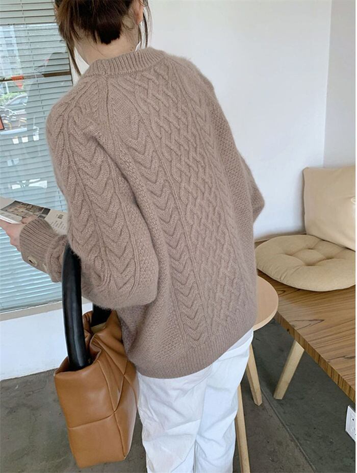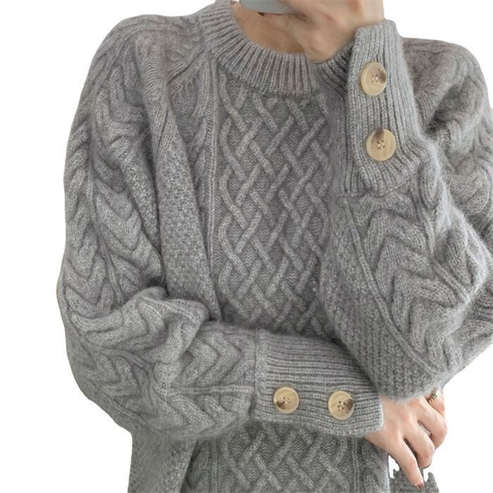 ニット セーター レディース 4色 長袖 クルーネック ケーブル編み おしゃれ 無地 秋冬 韓国 ファッション コーデ おすすめ カジュアル きれいめ 大きいサイズ 人気 ゆったり 20代 30代 40代 50代