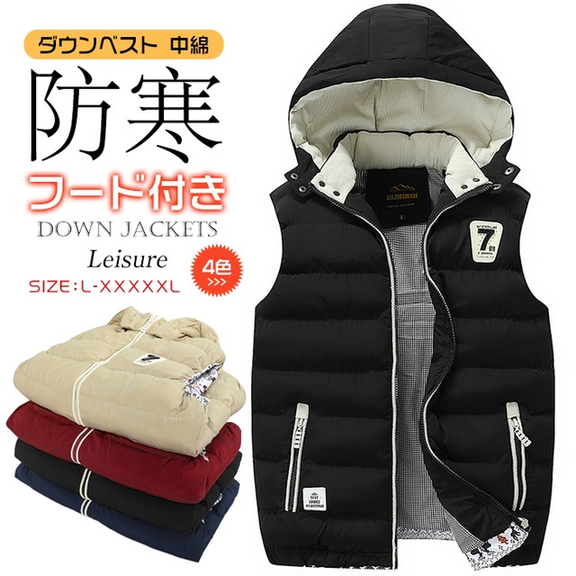 ダウンベスト 中綿ベスト メンズ 4色 おしゃれ フード付き 大きいサイズ 秋冬 7759