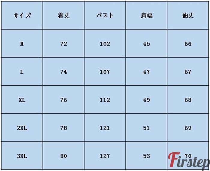 3XL:着丈80 バスト127 肩幅53 袖丈70