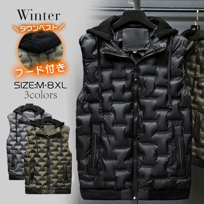 ダウンベスト 中綿ベスト メンズ 3色 M-8XLサイズ 中綿 無地 カジュアル 大きいサイズ 春秋冬 韓国 ファッション コーデ おすすめ カジュアル きれいめ 大きいサイズ 人気 ゆったり 20代 30代 40代 50代