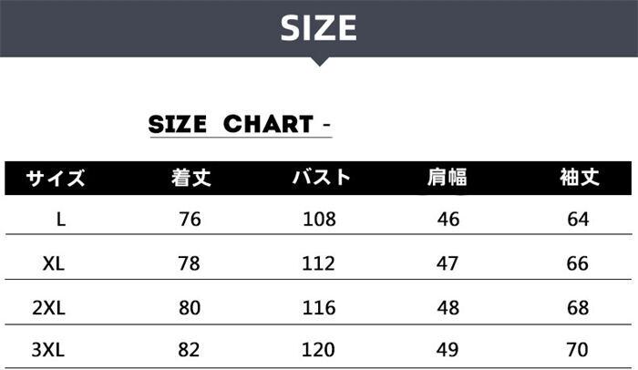 3XL:着丈82バスト120 肩幅49 袖丈70