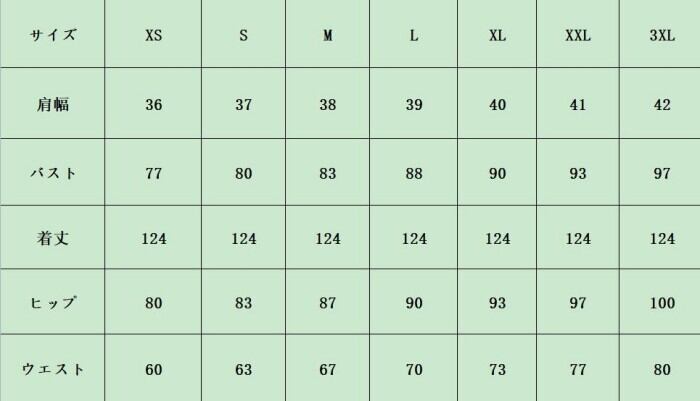 XXL:肩幅41 バスト93 着丈124 ヒップ97 ウエスト77